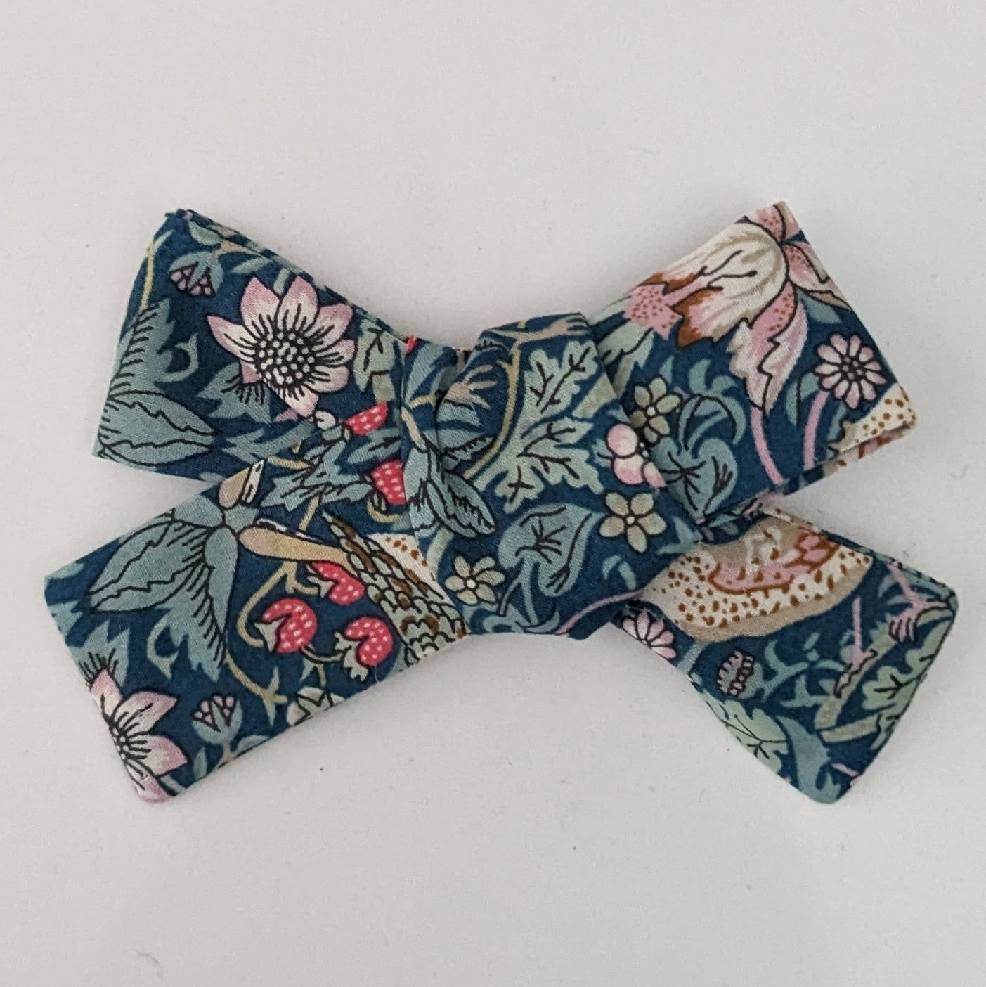 Bow Alligator Clip Strawberry Thief Blue
