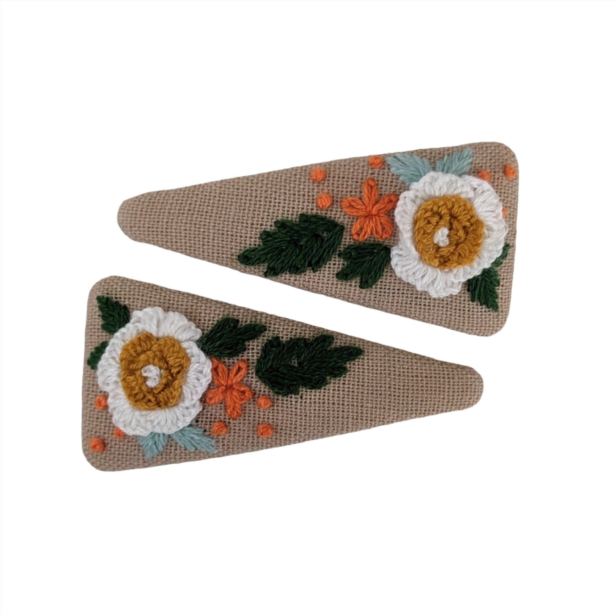 Triangle Embroidered Orange Flower Snap Clips