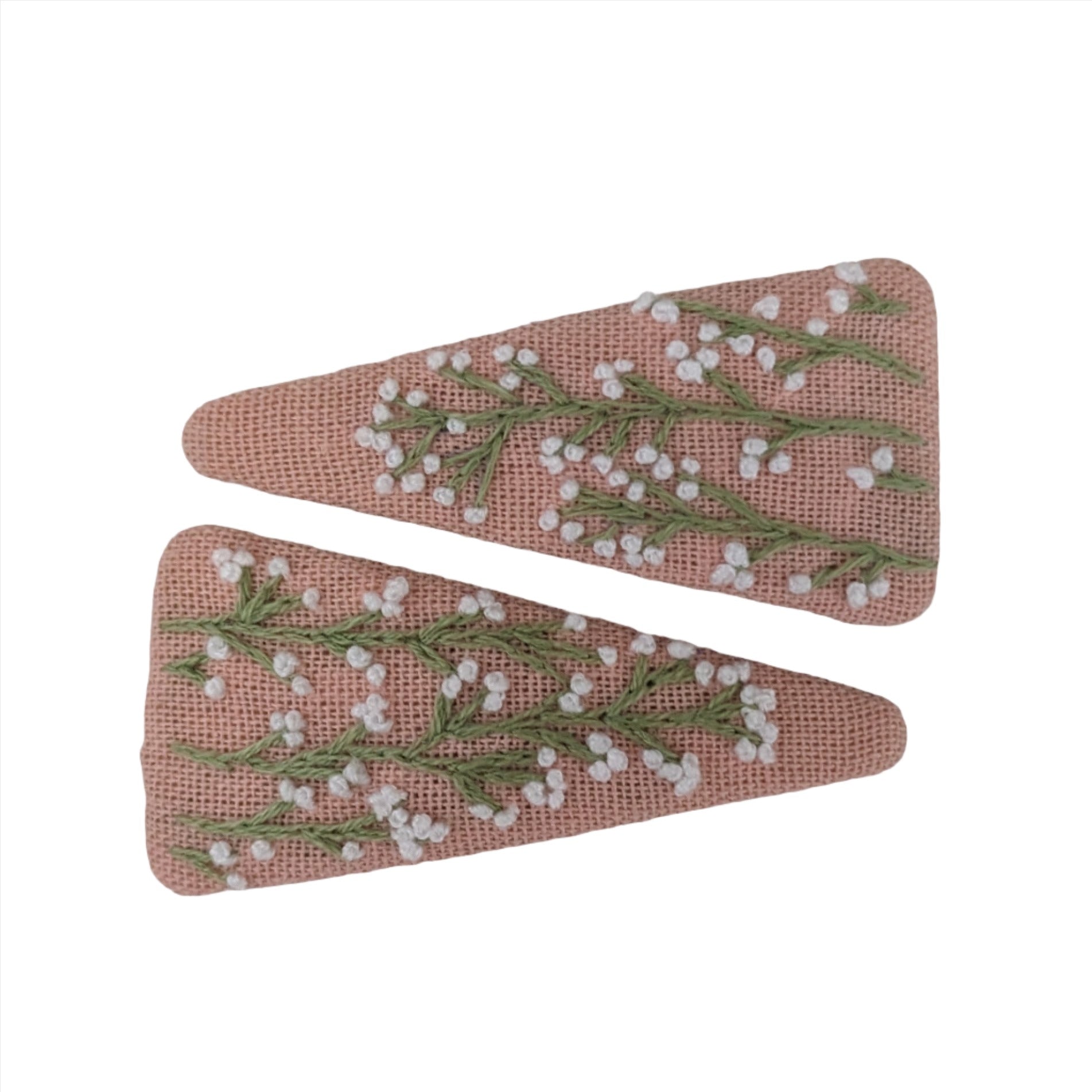 Triangle Embroidered Baby Breath Snap Clips Pink