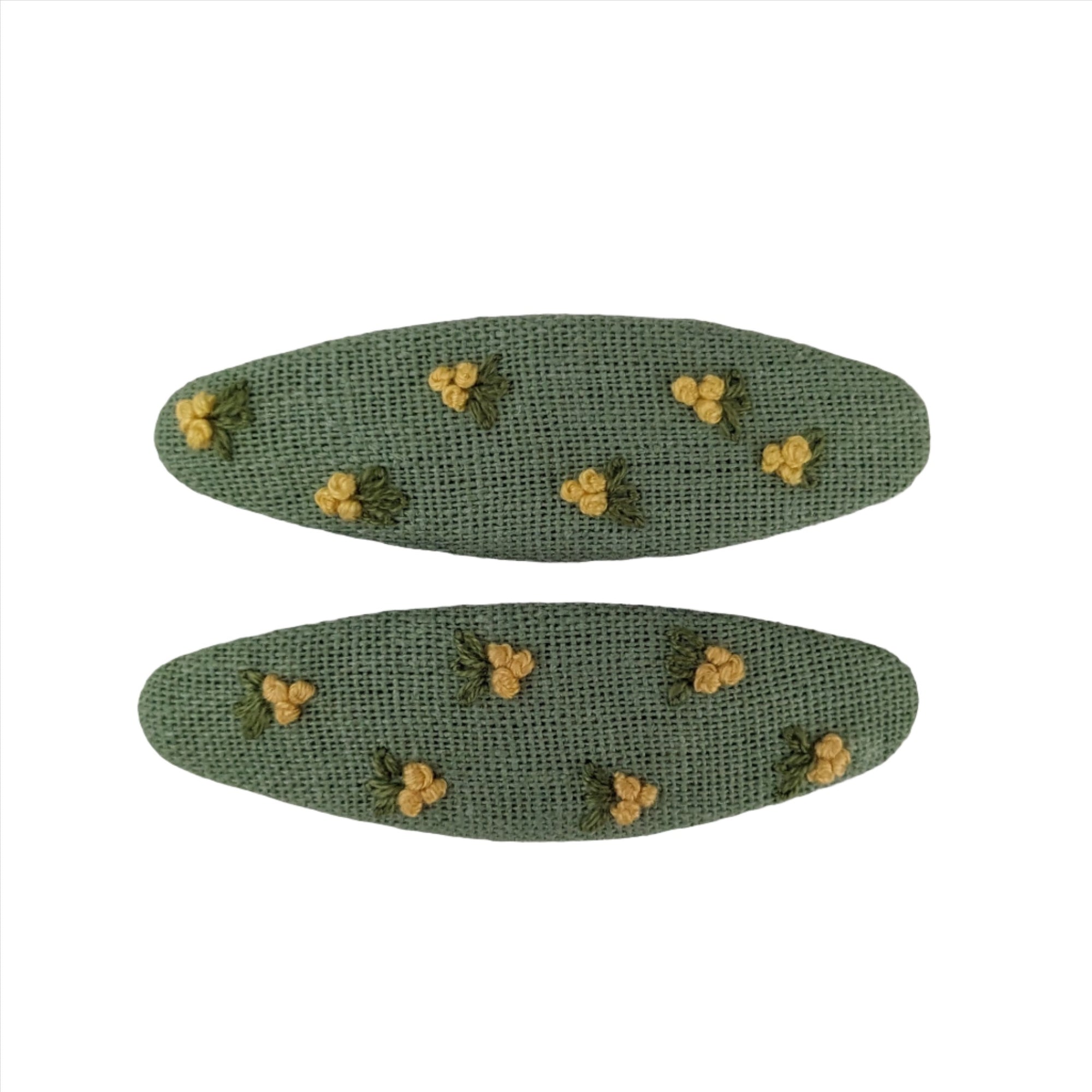Embroidered Small Flower Snap Clips Green