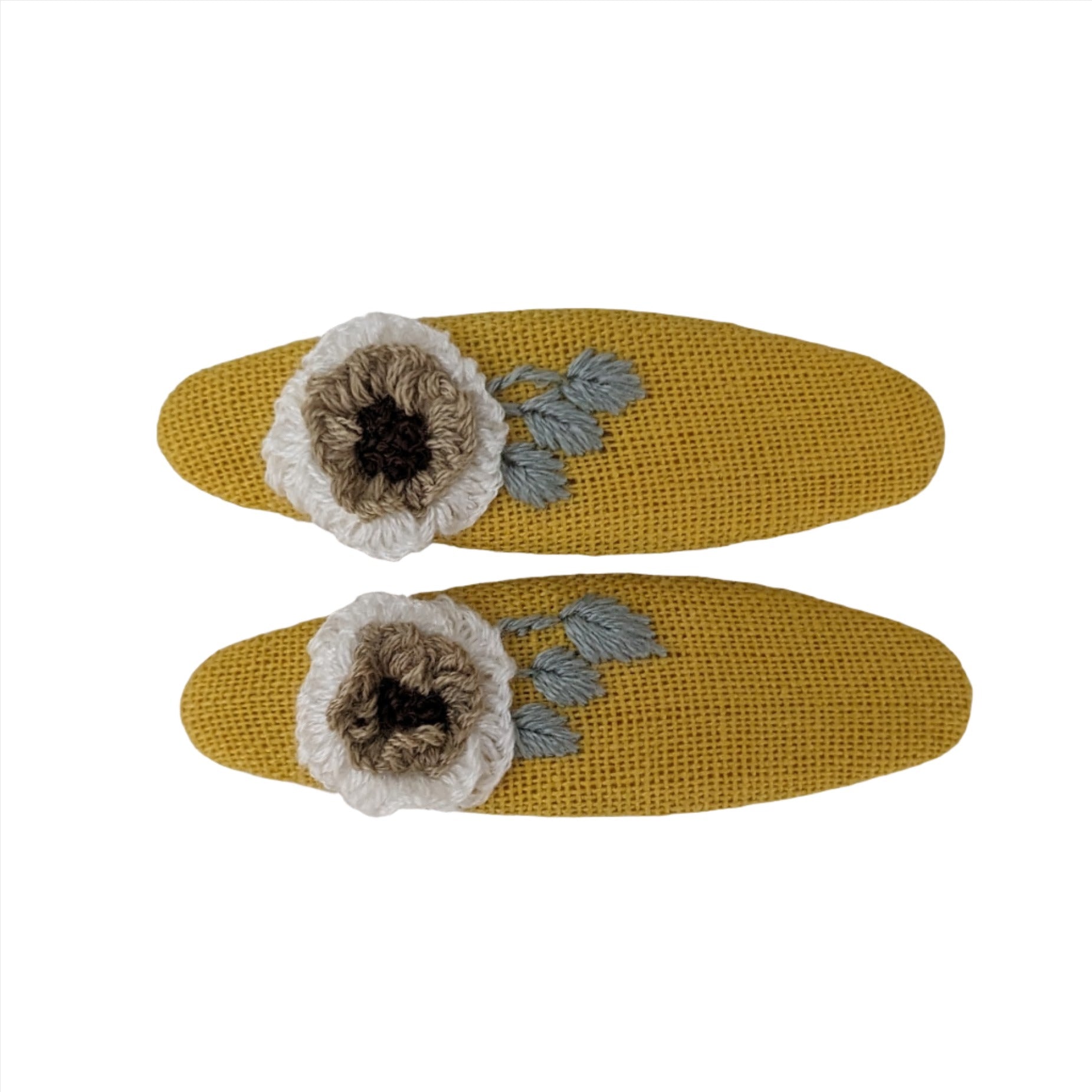Embroidered Small Flower Snap Clips Yellow