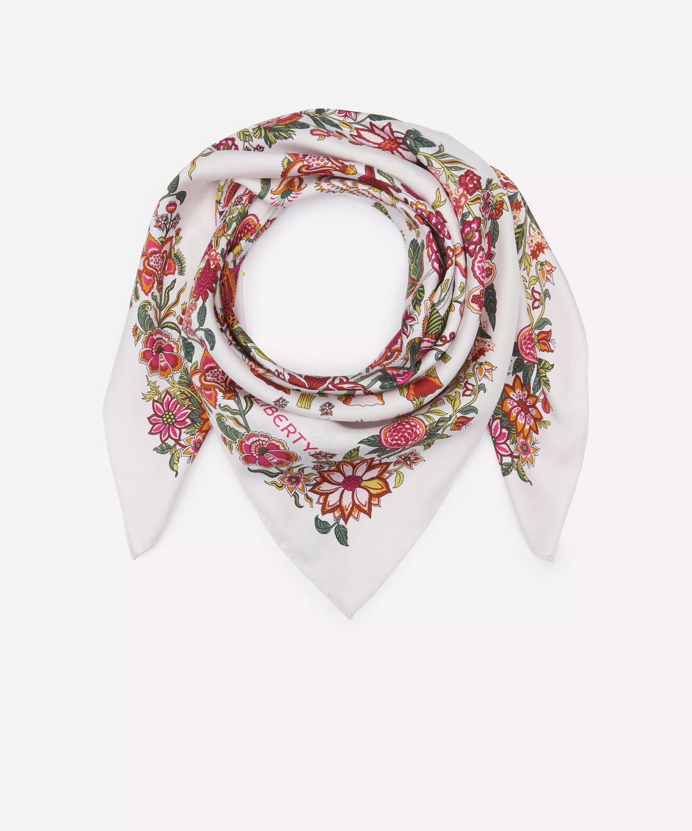 Product Code: LB87-1 Size: 90cm Composition: 100% Premium Silk Twill Extra Feature: Double Sided Print Shoestring Rolled Hem Made in Italy