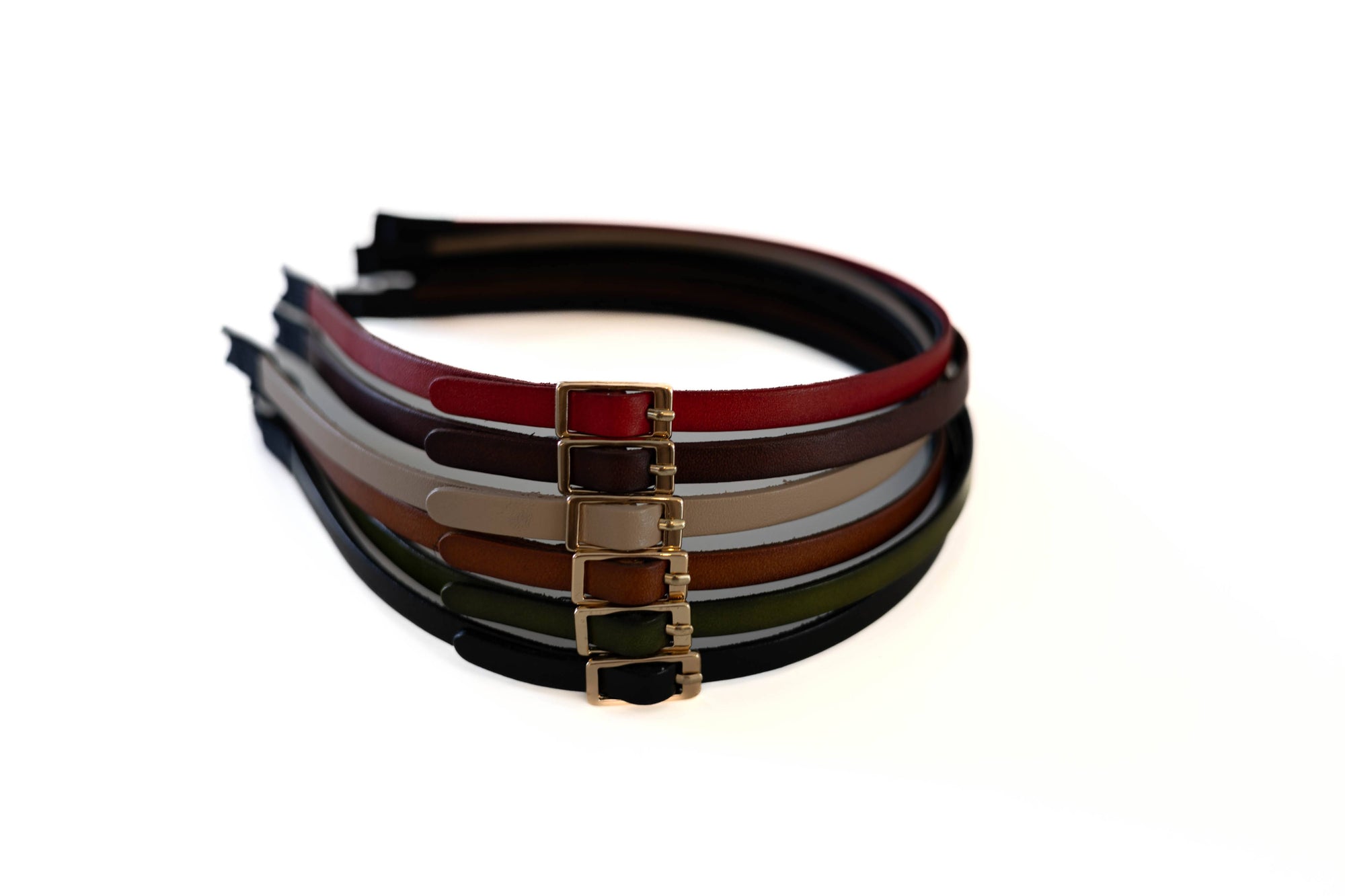 Vivente Thin Leather Buckle Headband Khaki