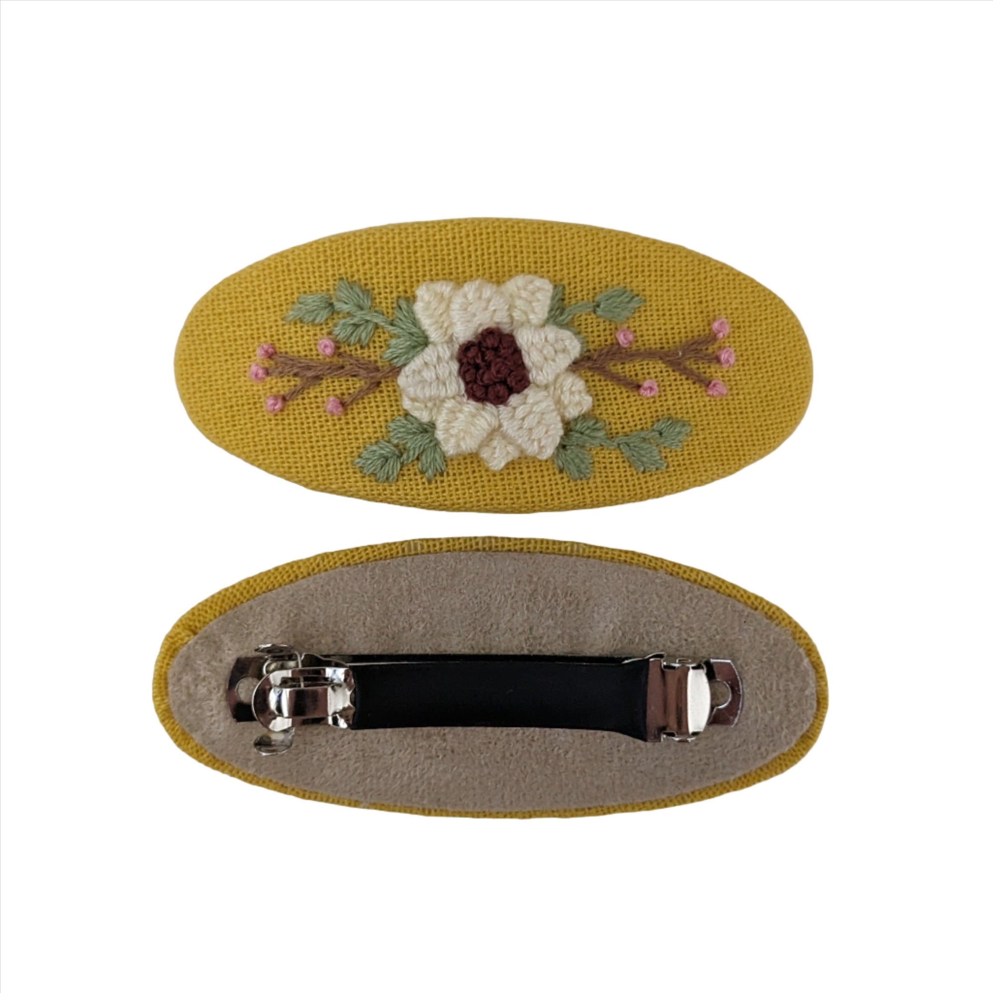 Embroidered Barrette Clip Mustard