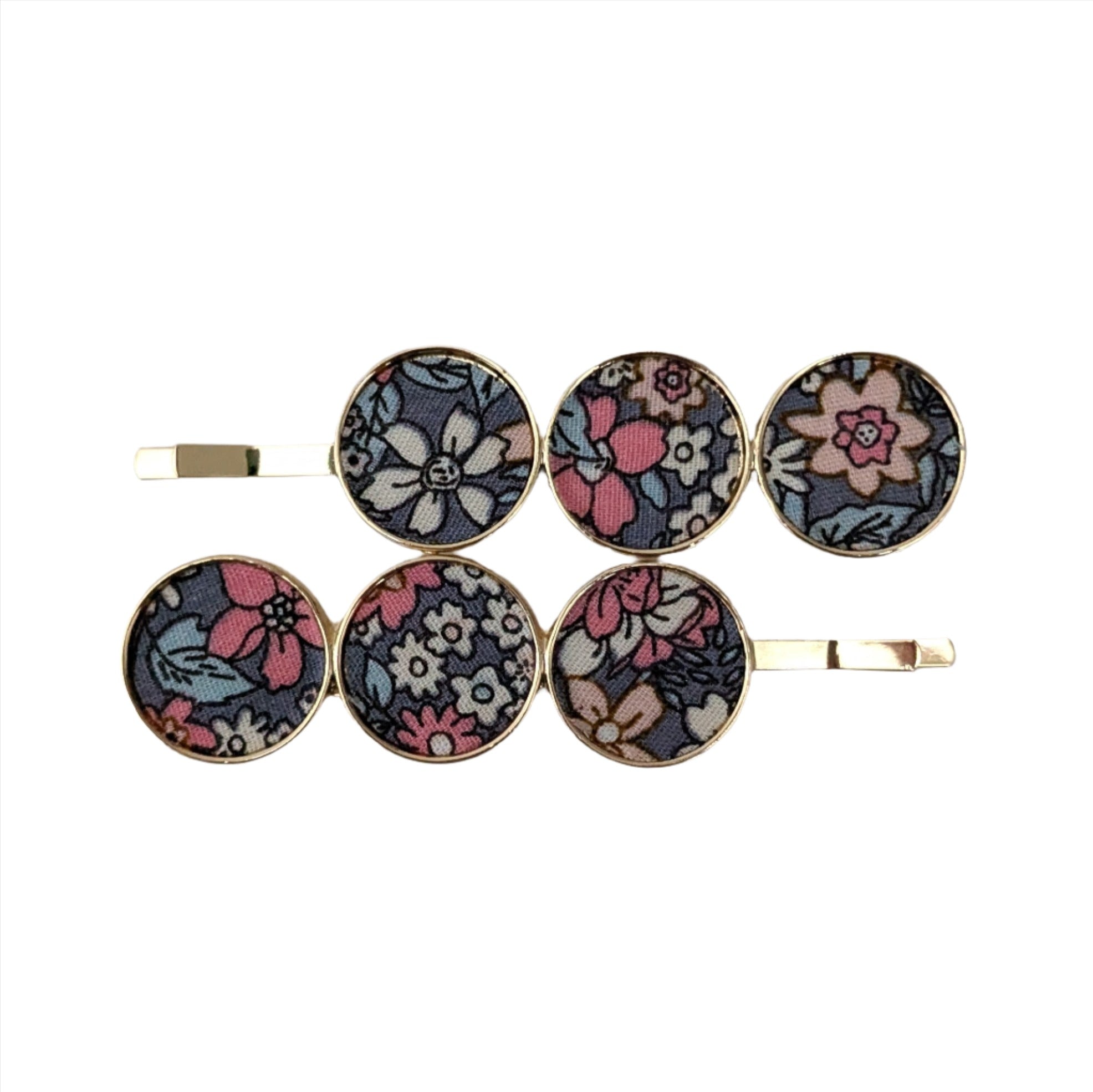Triple Disc Clips Floral Pink Grey
