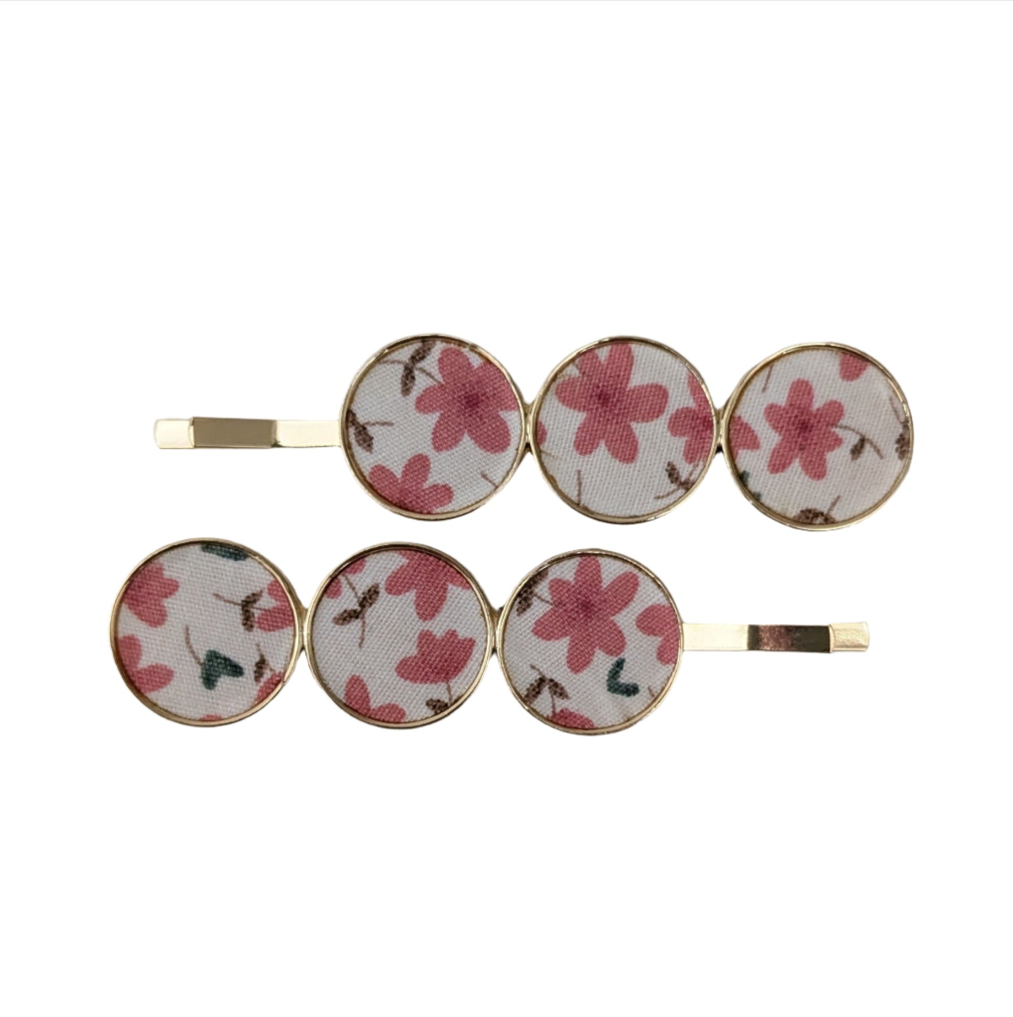Triple Disc Clips Floral Cream Pink