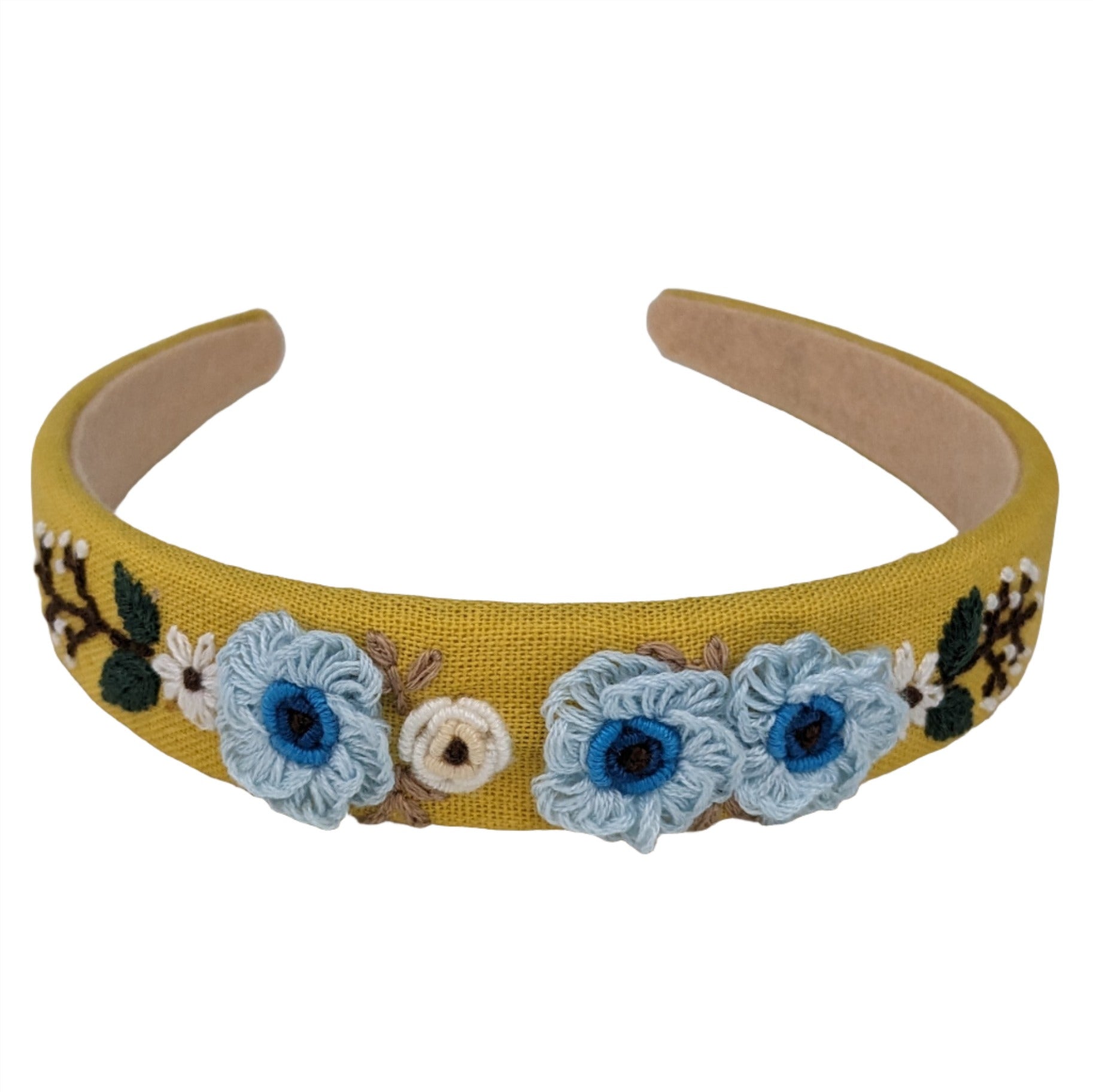 Embroidered Headband Yellow with Blue Roses